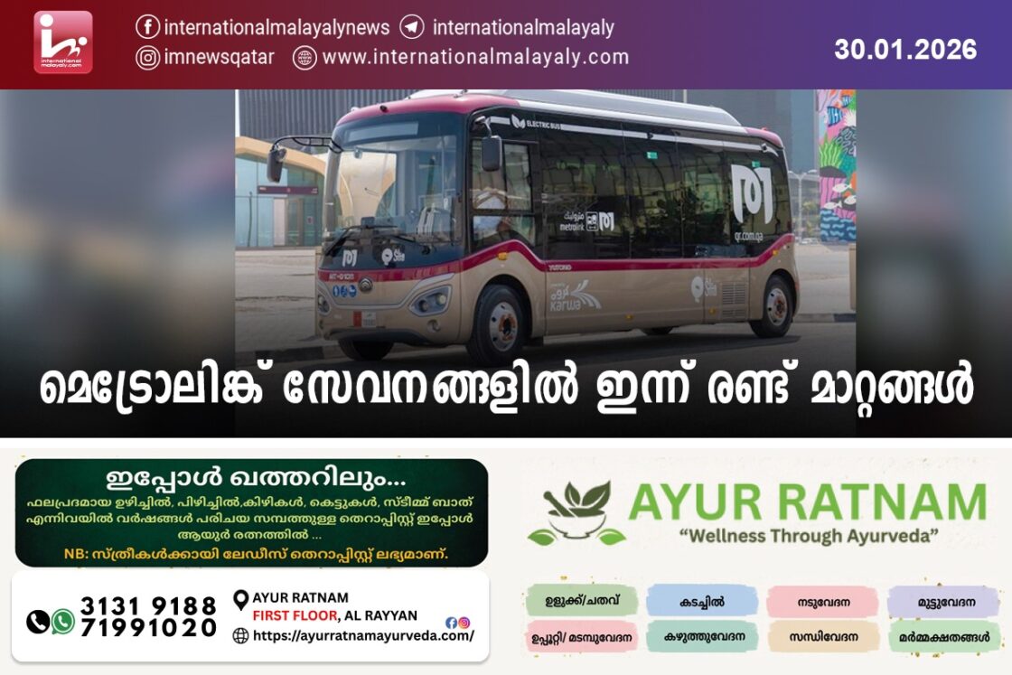 ദോഹ. ദോഹ മെട്രോ എഡ്യൂക്കേഷന് സിറ്റി, നാഷണല് മ്യൂസിയം മെട്രോ സ്റ്റേഷന് എന്നിവയ്ക്ക് സേവനം നല്കുന്ന മെട്രോലിങ്ക് സേവനങ്ങളില് ഇന്ന് രണ്ട് മാറ്റങ്ങള് പ്രഖ്യാപിച്ചു.