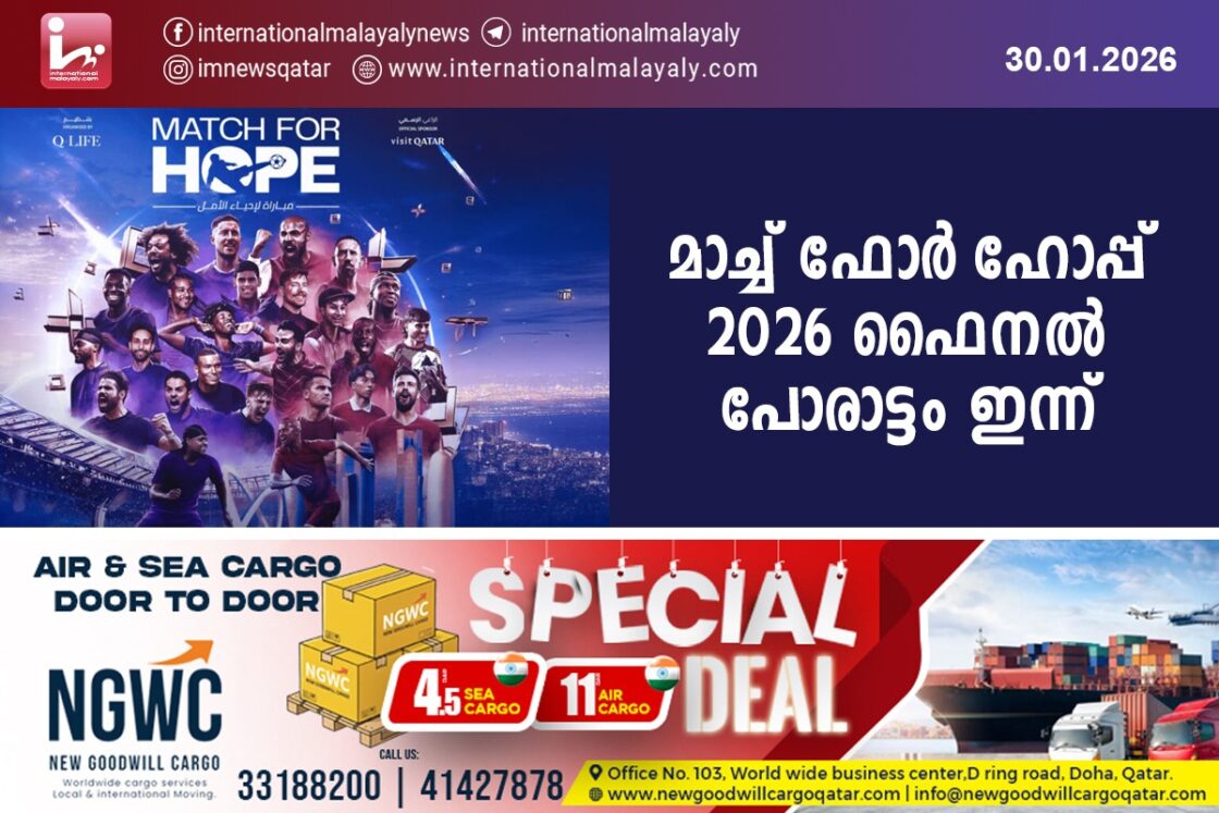 ദോഹ. മാച്ച് ഫോര് ഹോപ്പ് 2026 ഫൈനല് പോരാട്ടത്തില് ജനുവരി 30 ന് വൈകുന്നേരം 7 മണിക്ക് അഹമ്മദ് ബിന് അലി വേള്ഡ് കപ്പ് സ്റ്റേഡിയത്തില് ടീം ചങ്ക്സും ടീം അബോഫ്ലയും ഏറ്റുമുട്ടും.