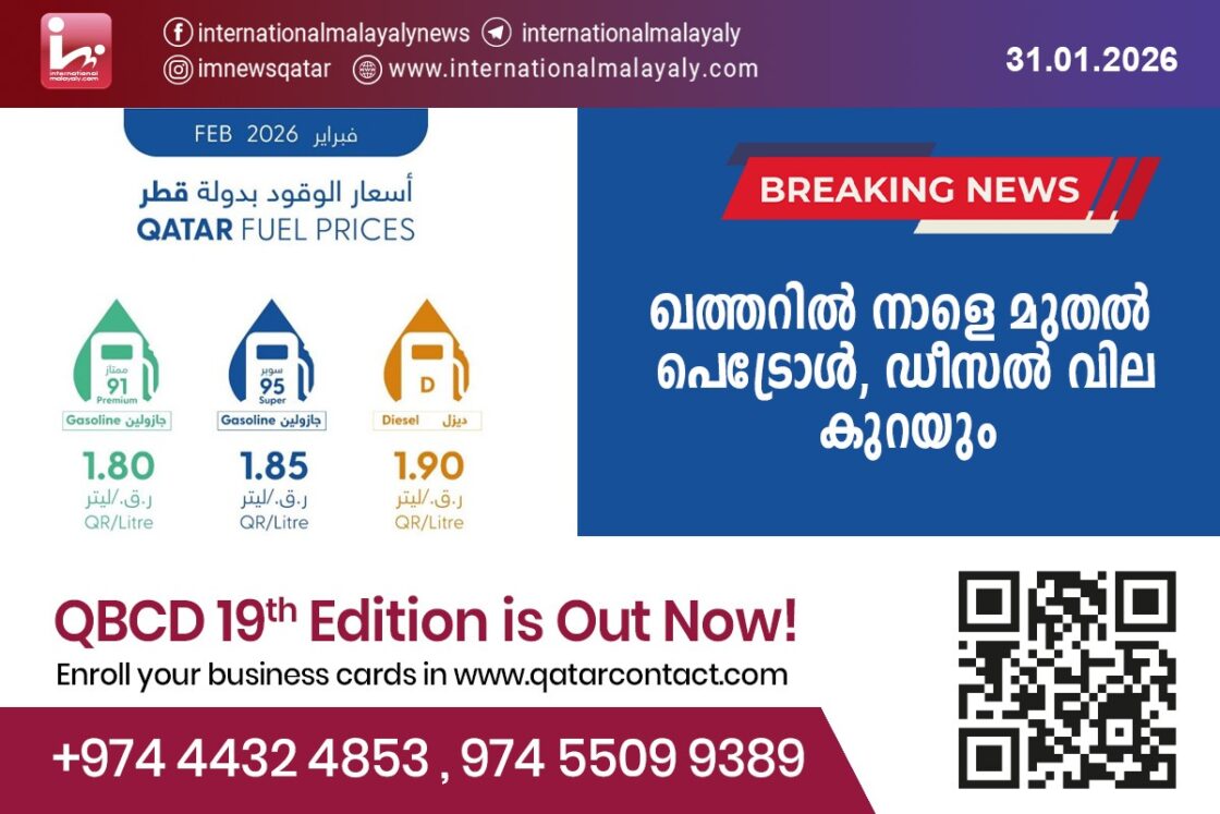ഖത്തറില് നാളെ മുതല് പെട്രോള് , ഡീസല് വില കുറയും