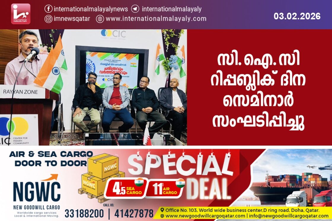 ദോഹ: ഇന്ത്യന് റിപ്പബ്ലിക് ദിനാഘോഷങ്ങളുടെ ഭാഗമായി സെന്റര് ഫോര് ഇന്ത്യന് കമ്മ്യൂണിറ്റി (സി.ഐ.സി) റയ്യാന് സോണ് ”ചരിത്രവും വര്ത്തമാനവും” എന്ന തലക്കെട്ടില് റിപ്പബ്ലിക് ദിന സെമിനാര് സംഘടിപ്പിച്ചു. ഇന്ത്യന് റിപ്പബ്ലിക്കിന്റെ ചരിത്രപ്രാധാന്യവും ഭരണഘടനാ മൂല്യങ്ങളുടെ സമകാലിക പ്രസക്തിയും സെമിനാര് ചര്ച്ച ചെയ്തു.