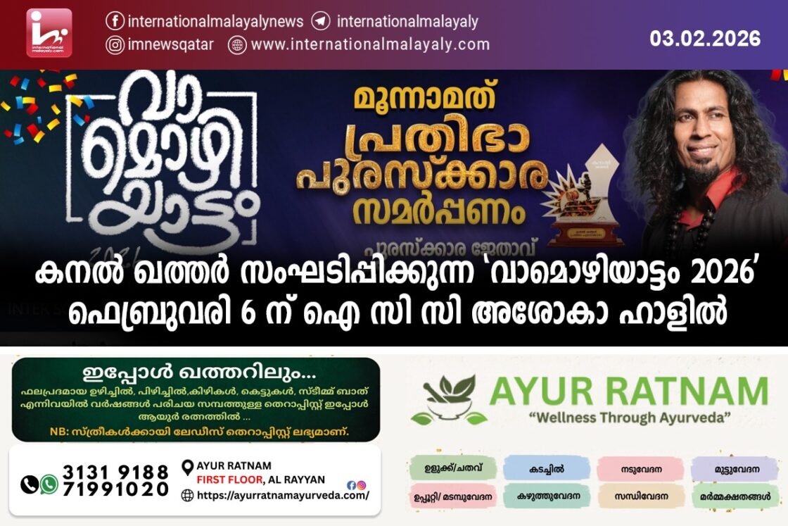 കനല് ഖത്തര് സംഘടിപ്പിക്കുന്ന ‘വാമൊഴിയാട്ടം 2026’ ഫെബ്രുവരി 6 ന് ഐ സി സി അശോകാ ഹാളില്