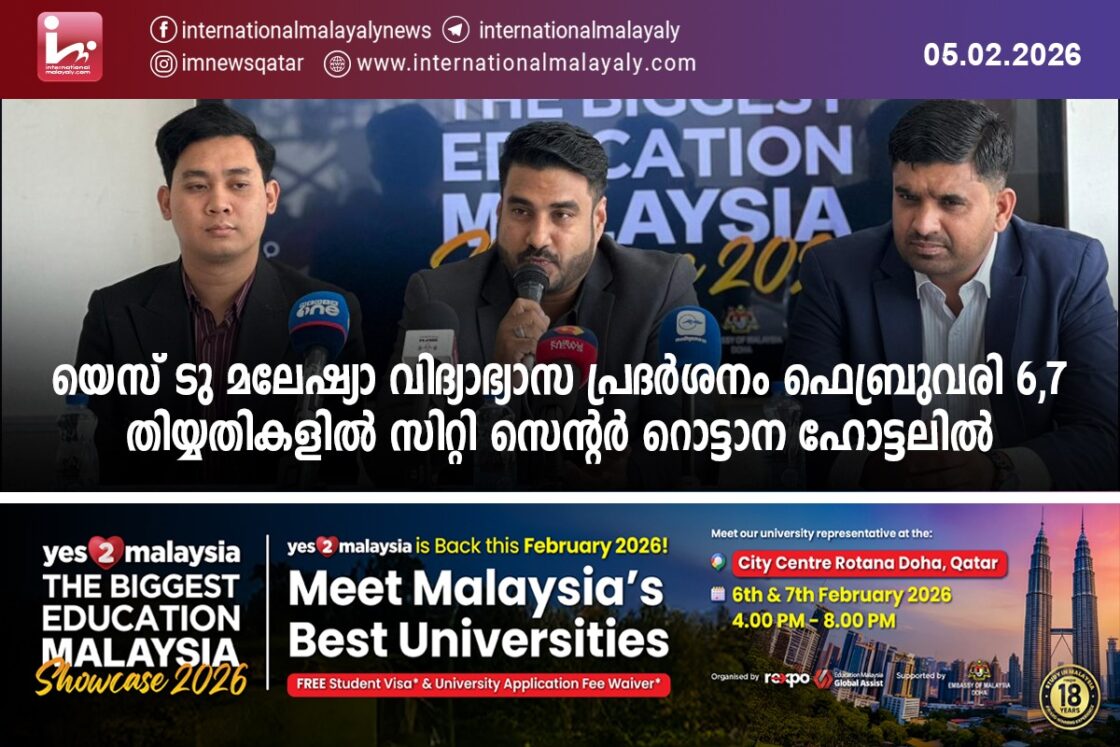 ദോഹ. മലേഷ്യയിലെ 23 മുന്നിര യൂണിവേര്സിറ്റികളുടെ പങ്കാളിത്തത്തോടെ ഖത്തറിലെ മലേഷ്യന് എംബസിയുടെ സഹകരണത്തോടെ റക്സ്പോ സെന്റര് സംഘടിപ്പിക്കുന്ന യെസ് ടു മലേഷ്യാ വിദ്യാഭ്യാസ പ്രദര്ശനം ഫെബ്രുവരി 6,7 തിയ്യതികളില് സിറ്റി സെന്റര് റൊട്ടാന ഹോട്ടലില് നടക്കും. എഞ്ചിനീയറിംഗ്, ബിസിനസ്, ഐടി, ഹോസ്പിറ്റാലിറ്റി , ഹെല്ത്ത് കെയര് തുടങ്ങി വിവിധ മേഖലകളിലുള്ള യൂണിവേര്സിറ്റി അധികൃതരുമായി നേരിട്ട് സംസാരിക്കാനും പ്രവേശന നടപടികള് ആരംഭിക്കാനും പ്രദര്ശനം സൗകര്യമൊരുക്കും.
