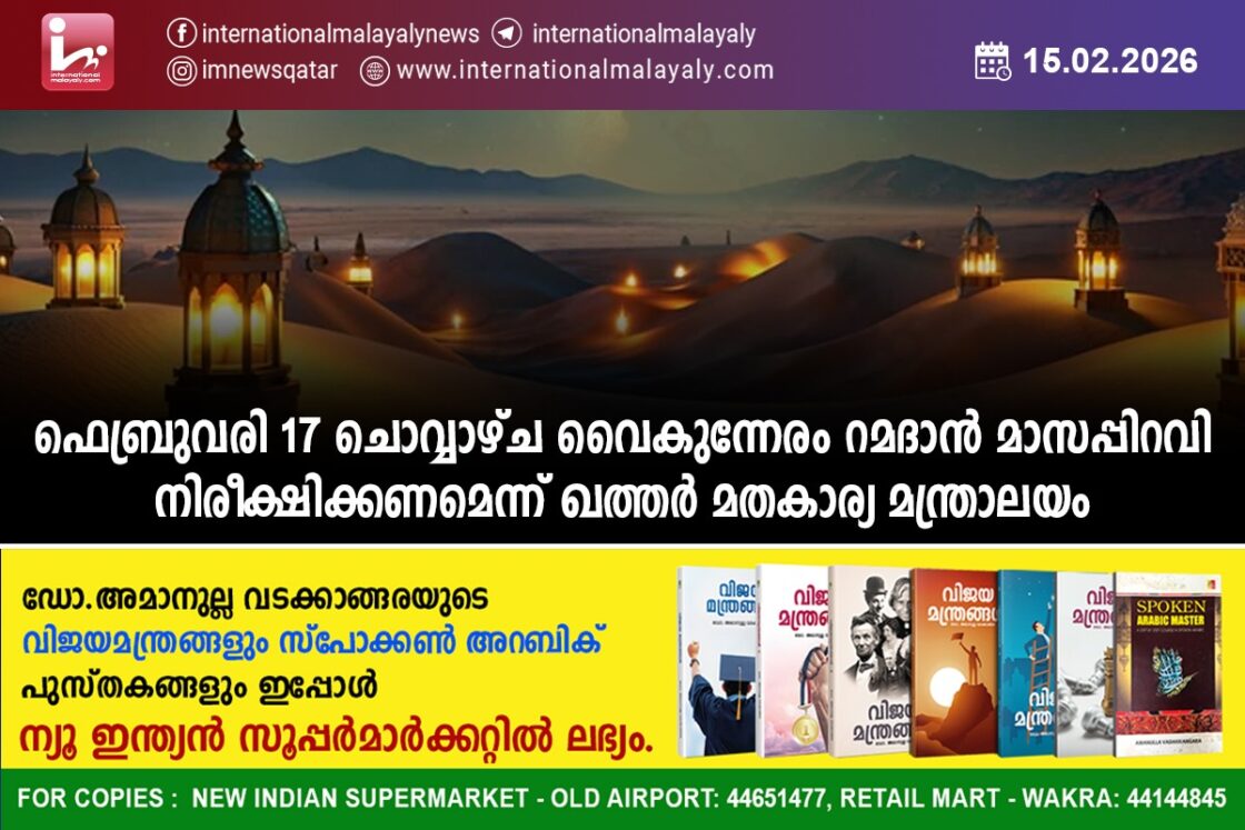 ഫെബ്രുവരി 17 ചൊവ്വാഴ്ച വൈകുന്നേരം റമദാന് മാസപ്പിറവി നിരീക്ഷിക്കണമെന്ന് ഖത്തര് മതകാര്യ മന്ത്രാലയം