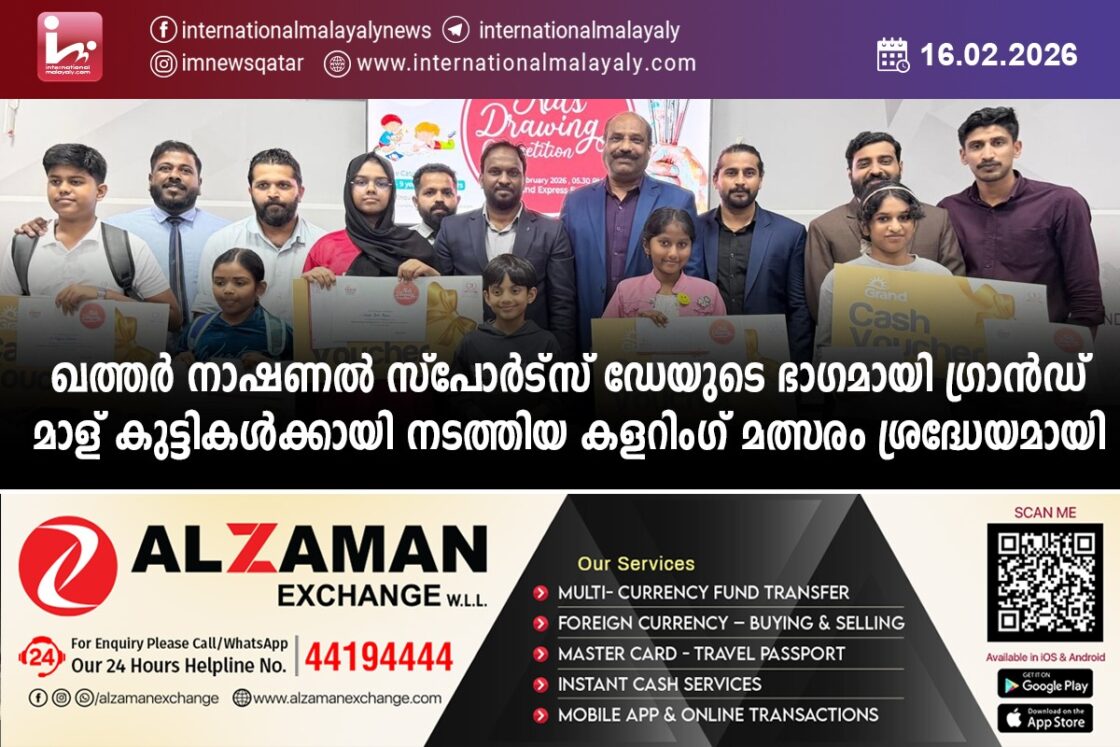ഖത്തര്‍ നാഷണല്‍ സ്‌പോര്‍ട്‌സ് ഡേയുടെ ഭാഗമായി ഗ്രാന്‍ഡ് മാള് കുട്ടികള്‍ക്കായി നടത്തിയ കളറിംഗ് മത്സരം ശ്രദ്ധേയമായി