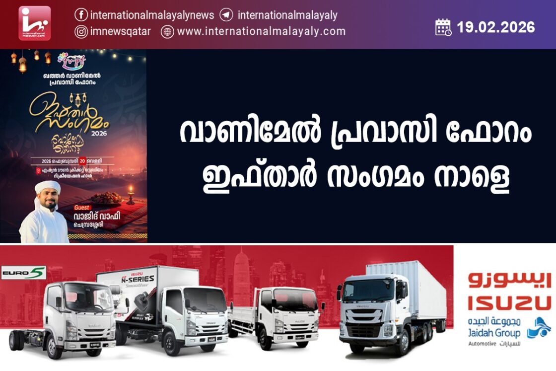 ദോഹ : ഖത്തര്‍ വാണിമേല്‍ പ്രവാസി ഫോറം സംഘടിപ്പിക്കുന്ന ഇഫ്താര്‍ സംഗമം നാളെ ( വെള്ളി )നടക്കുമെന്ന് ഭാരവാഹികള്‍ അറിയിച്ചു. ഇന്‍ഡസ്ട്രിയല്‍ ഏരിയ ഏഷ്യന്‍ ടൗണ്‍ ക്രിക്കറ്റ് സ്റ്റേഡിയം റിക്രിയേഷന്‍ ഹാളില്‍ വെച്ച് നടക്കുന്ന ഇഫ്താര്‍ സംഗമം വൈകുന്നേരം 4:00 മണിക്ക് ആരംഭിക്കും. JACHI & MUCHI OPTICALSന്റെ നേതൃത്വത്തില്‍ സൗജന്യ നേത്ര പരിശോധനയും ഫോക്കസ് മെഡിക്കല്‍ സെന്ററിന്റെ നേതൃത്വത്തില്‍ സൗജന്യ മെഡിക്കല്‍ ക്യാമ്പും, നോര്‍ക്ക സേവനങ്ങള്‍, വാജിദ് വാഫി ചെമ്പ്രശ്ശേരിയുടെ റമദാന്‍ സന്ദേശം തുടങ്ങിയവയും ഇഫ്താര്‍ സംഗമത്തോട് അനുബന്ധിച്ച് ഉണ്ടായിരിക്കുമെന്നും ഖത്തറിലെ മുഴുവന്‍ വാണിമേല്‍ക്കാരും പരിപാടിയില്‍ പങ്കെടുക്കണമെന്നും ഭാരവാഹികള്‍ പത്രകുറിപ്പില്‍ അറിയിച്ചു.