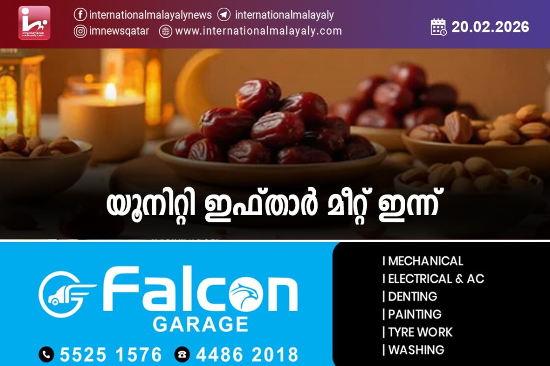ദോഹ. യൂനിറ്റി ഇഫ്താര്‍ മീറ്റ് ഇന്ന് വൈകുന്നേരം എംഇ എസ് ഇന്ത്യന്‍ സ്‌കൂള്‍ കെ.ജി.ഹാളില്‍ നടക്കുമെന്ന് ചീഫ് കോഡിനേറ്റര്‍ എ.പി. ഖലീലും കോഡിനേറ്റര്‍ വി.സി.മശ്ഹൂദും അറിയിച്ചു.