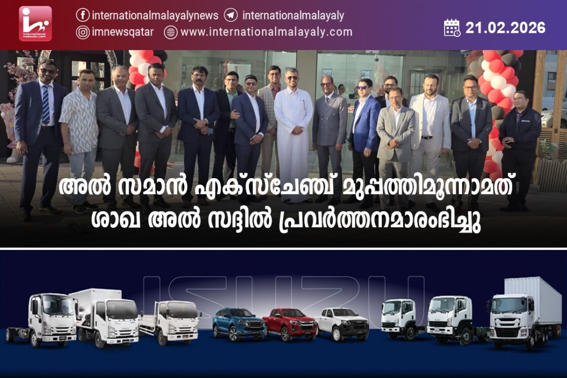 ദോഹ. ഖത്തറിലെ പ്രമുഖ എക്സ്ചേഞ്ച് കമ്പനിയായ അല് സമാന് എക്സ്ചേഞ്ച് മുപ്പത്തിമൂന്നാമത് ശാഖ അല് സദ്ദില് ഉരീദുവിന്റെ എതിര്വശത്തായി പ്രവര്ത്തനമാരംഭിച്ചു. മുഹമ്മദ് അന്വര് സാദത്ത്, ജനറല് മാനേജര്, ഡോ. സുബൈര് അബ്ദുള് റഹിമാന് സിഒഒ,ആദര്ശ ഷെനവ മാനേജര് ട്രഷറി, സന്തോഷ്കുമാര് കേശവന് , ഫിനാന്സ് മാനേജര്, മുസ്ലിം ഉദ്ദീന് ,ബിസിനസ് ഡെവലപ്മെന്റ് മാനേജര്, ബംഗ്ലാദേശ്, മറ്റ് അല് സമാന് എക്സ്ചേഞ്ചിലെ ഉദ്യോഗസ്ഥരും പങ്കെടുത്തു.