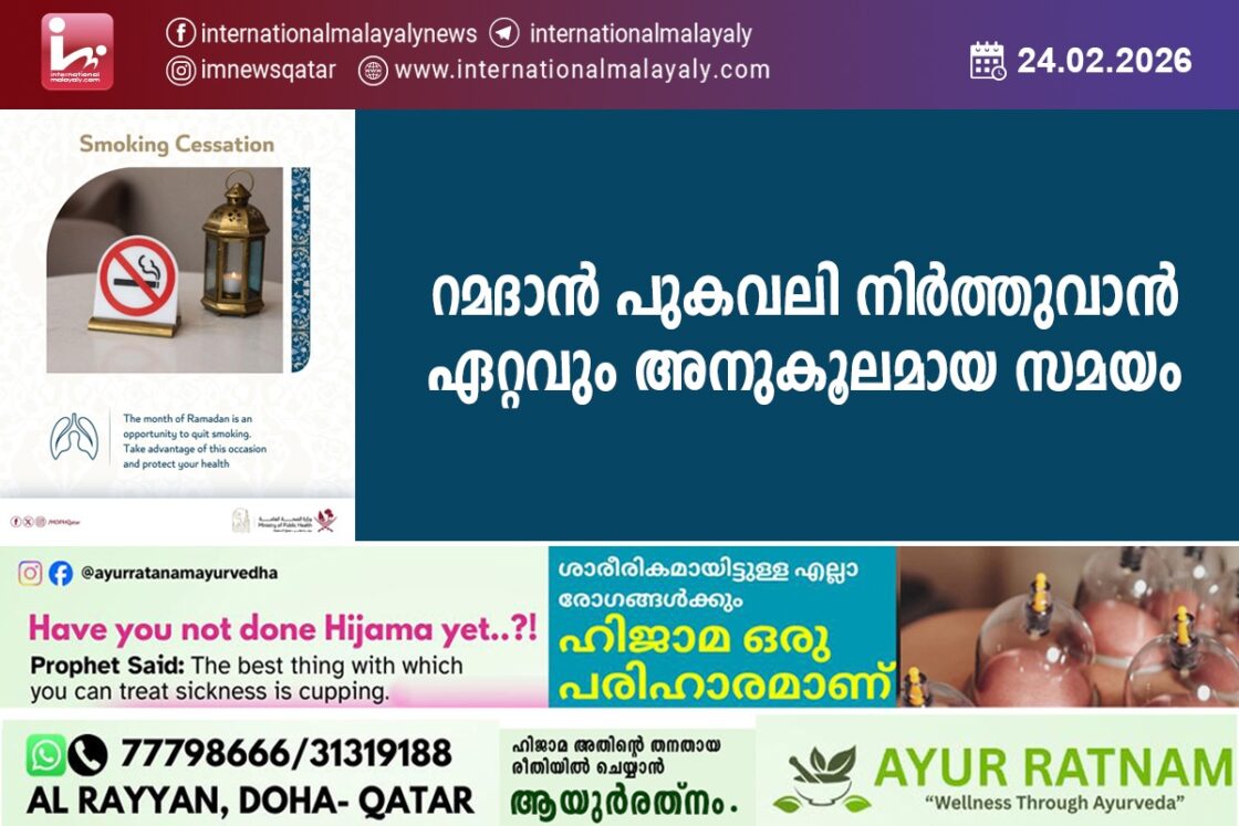 ദോഹ. പുകവലി നിര്ത്തുവാന് ഏറ്റവും അനുകൂലമായ സമയം റമദാനാണെന്നും ഈ ആനുകൂല്യം പ്രയോജനപ്പെടുത്തണമെന്നും പൊതുജനാരോഗ്യ മന്ത്രാലയം ആവശ്യപ്പെട്ടു.