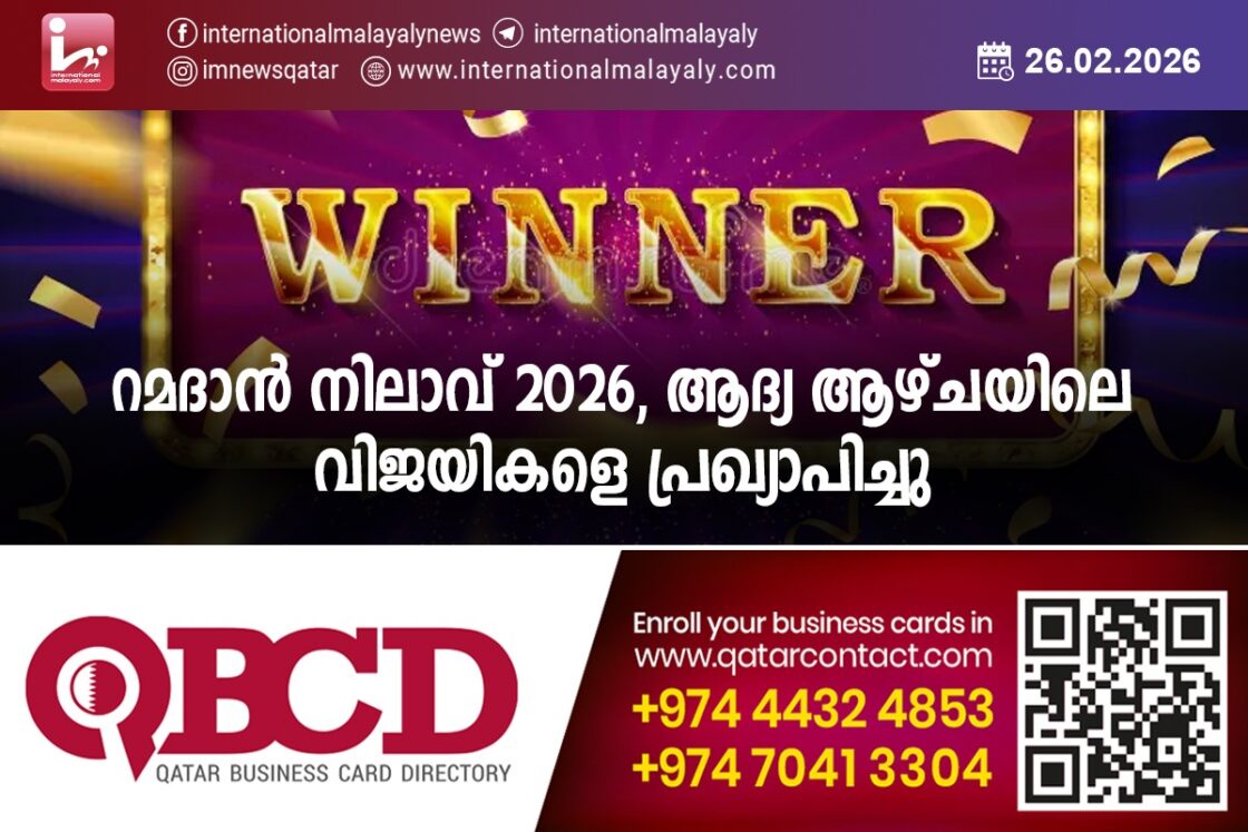 ദോഹ. പരിശുദ്ധ റമദാനില് ഇന്റര്നാഷണല് മലയാളി സംഘടിപ്പിക്കുന്ന റമദാന് നിലാവ് 2026 പ്രശ്നോത്തരിയിലെ ആദ്യ ആഴ്ചയിലെ വിജയികളെ പ്രഖ്യാപിച്ചു.
