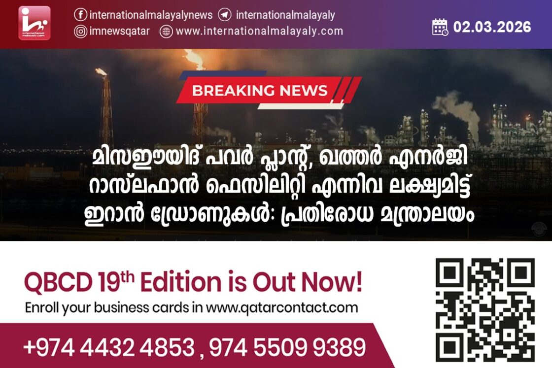 മിസഈയിദ് പവര് പ്ലാന്റ്, ഖത്തര് എനര്ജി റാസ് ലഫാന് ഫെസിലിറ്റി എന്നിവ ലക്ഷ്യമിട്ട് ഇറാന് ഡ്രോണുകള്: പ്രതിരോധ മന്ത്രാലയം