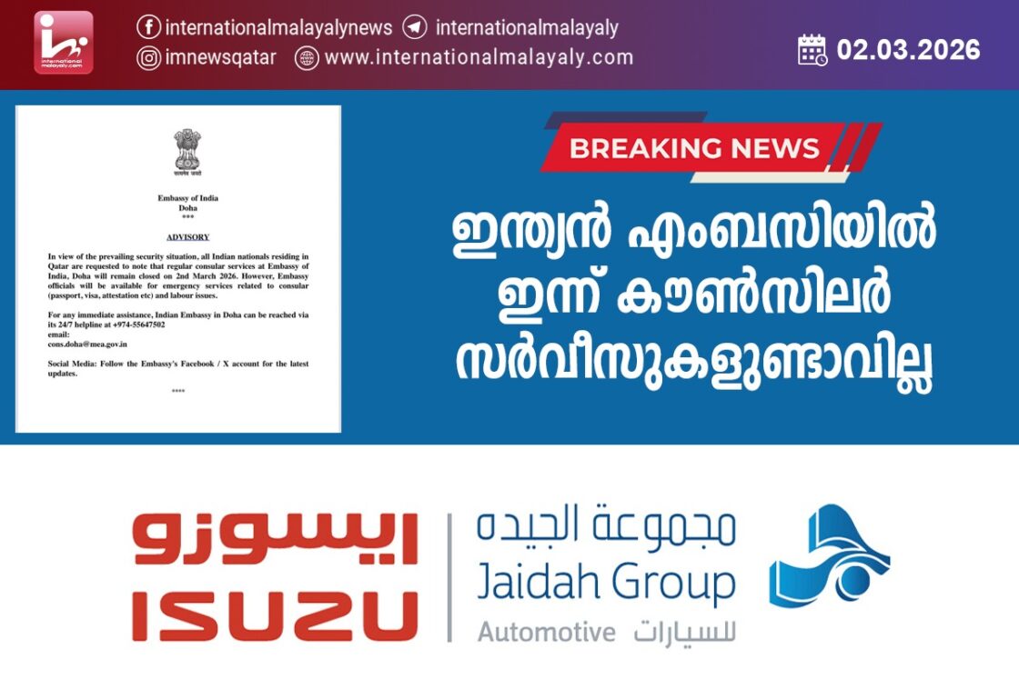 അടിയന്തിര സേവനങ്ങള് എപ്പോഴും ലഭ്യമാണെന്നും എംബസിയുടെ ഹെല്പ് ലൈന് നമ്പറായ 55647502 എന്ന നമ്പറിലോ [email protected] എന്ന വിലാസത്തിലോ ബന്ധപ്പെടാമെന്നും എംബസി അറിയിച്ചു