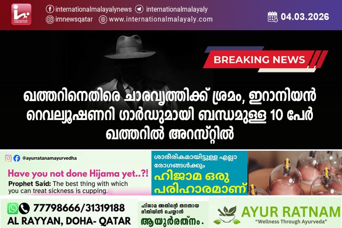 ഖത്തറിനെതിരെ ചാരവൃത്തിക്ക് ശ്രമം, ഇറാനിയന് റെവല്യൂഷണറി ഗാര്ഡുമായി ബന്ധമുള്ള 10 പേര് ഖത്തറില് അറസ്റ്റില്