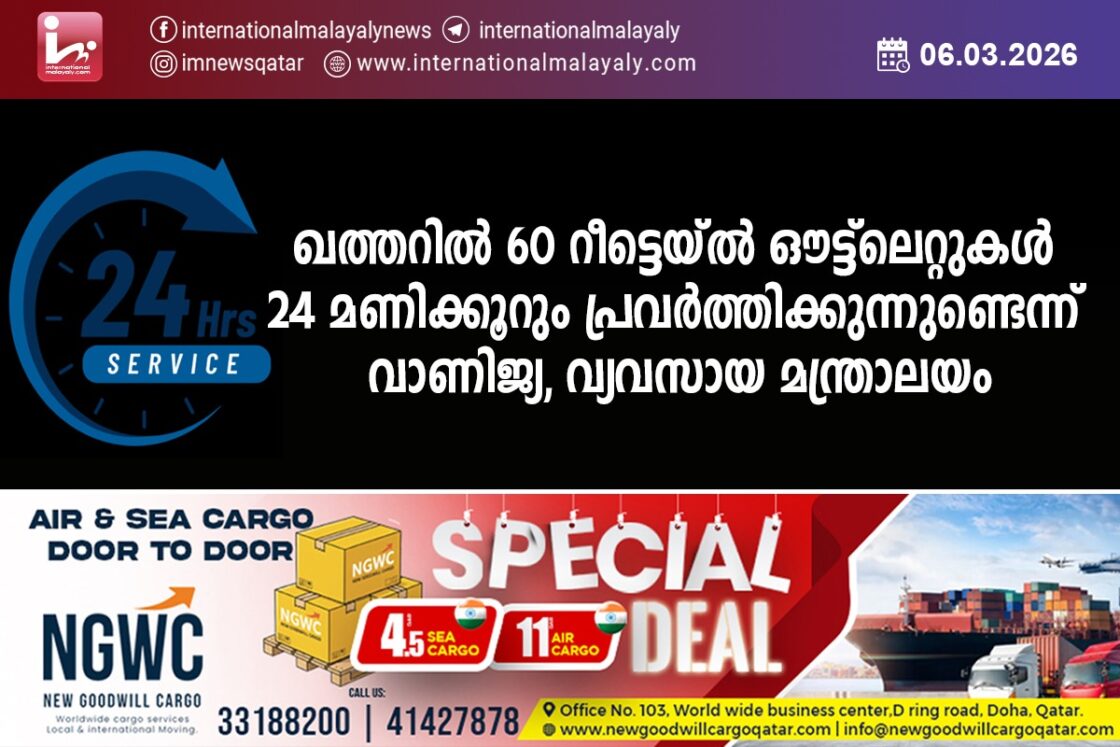 ഖത്തറില് 60 റീട്ടെയ്ല് ഔട്ട്ലെറ്റുകള് 24 മണിക്കൂറും പ്രവര്ത്തിക്കുന്നുണ്ടെന്ന് വാണിജ്യ, വ്യവസായ മന്ത്രാലയം