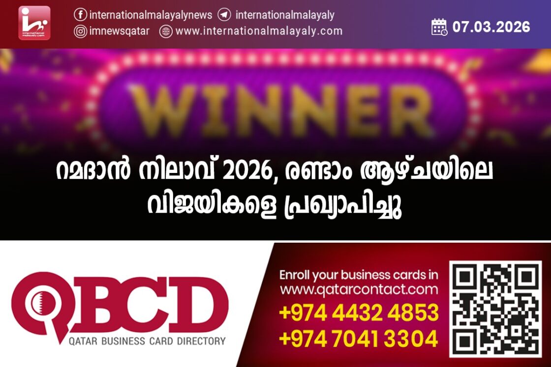 ദോഹ. പരിശുദ്ധ റമദാനില് ഇന്റര്നാഷണല് മലയാളി സംഘടിപ്പിക്കുന്ന റമദാന് നിലാവ് 2026 പ്രശ്നോത്തരിയിലെ രണ്ടാം ആഴ്ചയിലെ വിജയികളെ പ്രഖ്യാപിച്ചു.