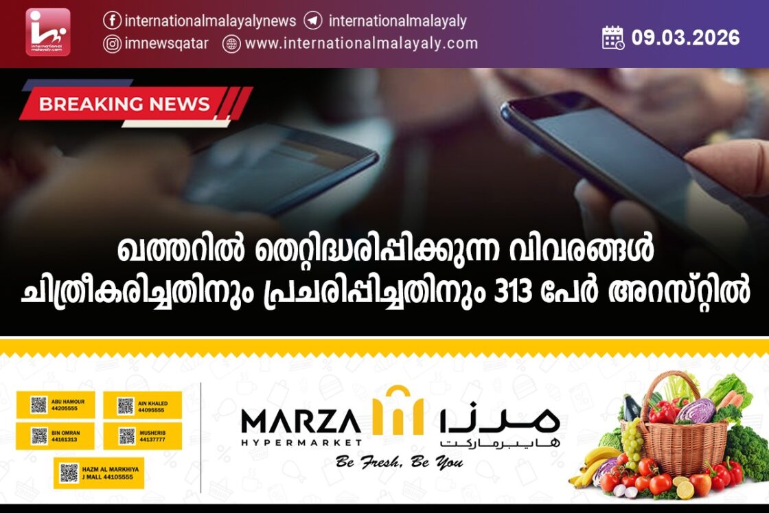 ഖത്തറില് തെറ്റിദ്ധരിപ്പിക്കുന്ന വിവരങ്ങള് ചിത്രീകരിച്ചതിനും പ്രചരിപ്പിച്ചതിനും 313 പേര് അറസ്റ്റില്