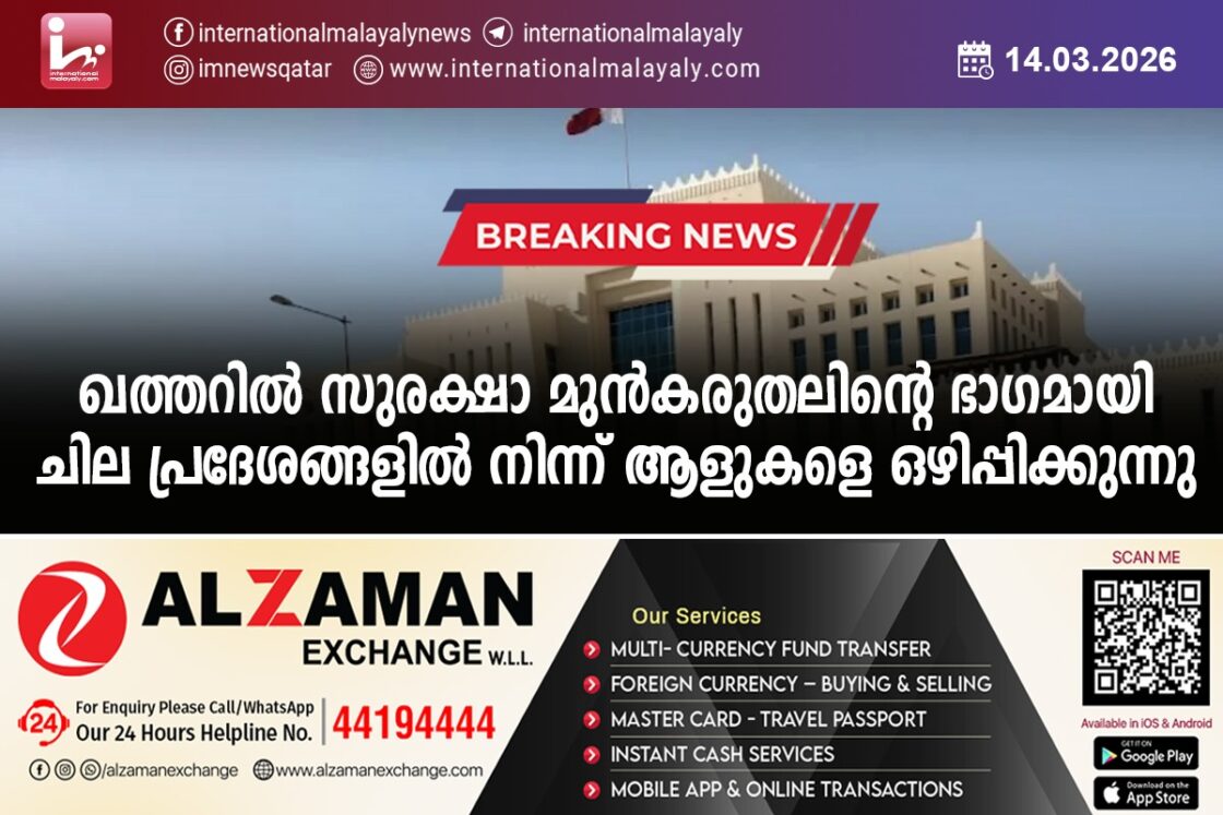 ഖത്തറില് സുരക്ഷാ മുന്കരുതലിന്റെ ഭാഗമായി ചില പ്രദേശങ്ങളില് നിന്ന് ആളുകളെ ഒഴിപ്പിക്കുന്നു