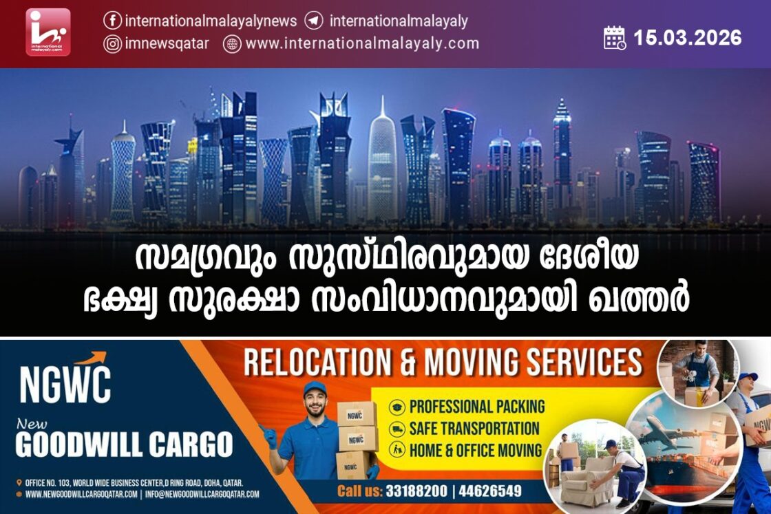 ദോഹ. സമഗ്രവും സുസ്ഥിരവുമായ ദേശീയ ഭക്ഷ്യ സുരക്ഷാ സംവിധാനവുമായി ഖത്തര്. പ്രാദേശിക ഉല്പ്പാദനം ശക്തിപ്പെടുത്തുന്നതിനും വിതരണ സ്രോതസ്സുകള് വൈവിധ്യവത്കരിക്കുന്നതിനും രാജ്യവ്യാപകമായി സ്ഥിരമായ ഭക്ഷ്യ ലഭ്യത ഉറപ്പാക്കുന്നതിനുമായി സമഗ്രവും സുസ്ഥിരവുമായ ഒരു ദേശീയ ഭക്ഷ്യ സുരക്ഷാ സംവിധാനവുമായാണ് ഖത്തര് മുന്നേറുന്നത്.