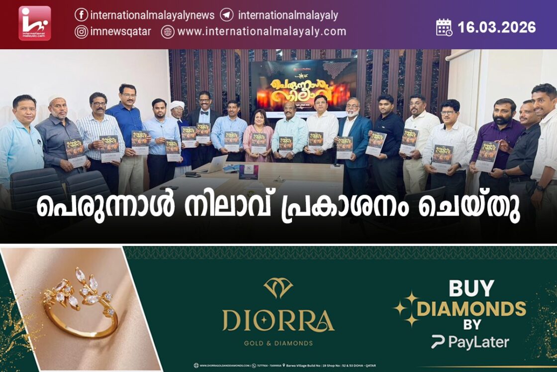 ദോഹ. ഖത്തറിലെ പ്രമുഖ അഡ് വര്ട്ടൈസിംഗ് ആന്റ് ഈവന്റ് മാനേജ്മെന്റ് കമ്പനിയായ മീഡിയ പ്ളസ് പ്രസിദ്ധീകരിച്ച പെരുന്നാള് നിലാവിന്റെ പ്രകാശനം അല് സുവൈദ് ഗ്രൂപ്പ് കോര്പറേറ്റ് ഓഫീസില് നടന്നു. അല് സുവൈദ് ഗ്രൂപ്പ് മാനേജിംഗ് ഡയറക്ടര് ഡോ.വി.വി.ഹംസക്ക് ആദ്യ പ്രതി നല്കി ഇന്ത്യന് കള്ചറല് സെന്റര് ഉപദേശക സമിതി ചെയര്മാന് പി.എന്. ബാബുരാജന് പ്രകാശനം നിര്വഹിച്ചു.