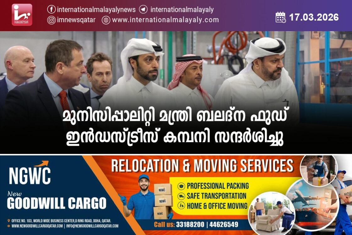 ദോഹ. ഖത്തര് മുനിസിപ്പാലിറ്റി മന്ത്രിയും ഭക്ഷ്യസുരക്ഷാ നയങ്ങളുടെ തുടര്നടപടി സമിതി ചെയര്മാനുമായ അബ്ദുല്ല ബിന് ഹമദ് ബിന് അബ്ദുല്ല അല് അതിയ്യ ബലദ്ന ഫുഡ് ഇന്ഡസ്ട്രീസ് കമ്പനിയില് പരിശോധനാ സന്ദര്ശനം നടത്തി, ഡയറക്ടര് ബോര്ഡ് ചെയര്മാന് മൗതാസ് അല് ഖയ്യാത്ത് അദ്ദേഹത്തെ സ്വീകരിച്ചു.