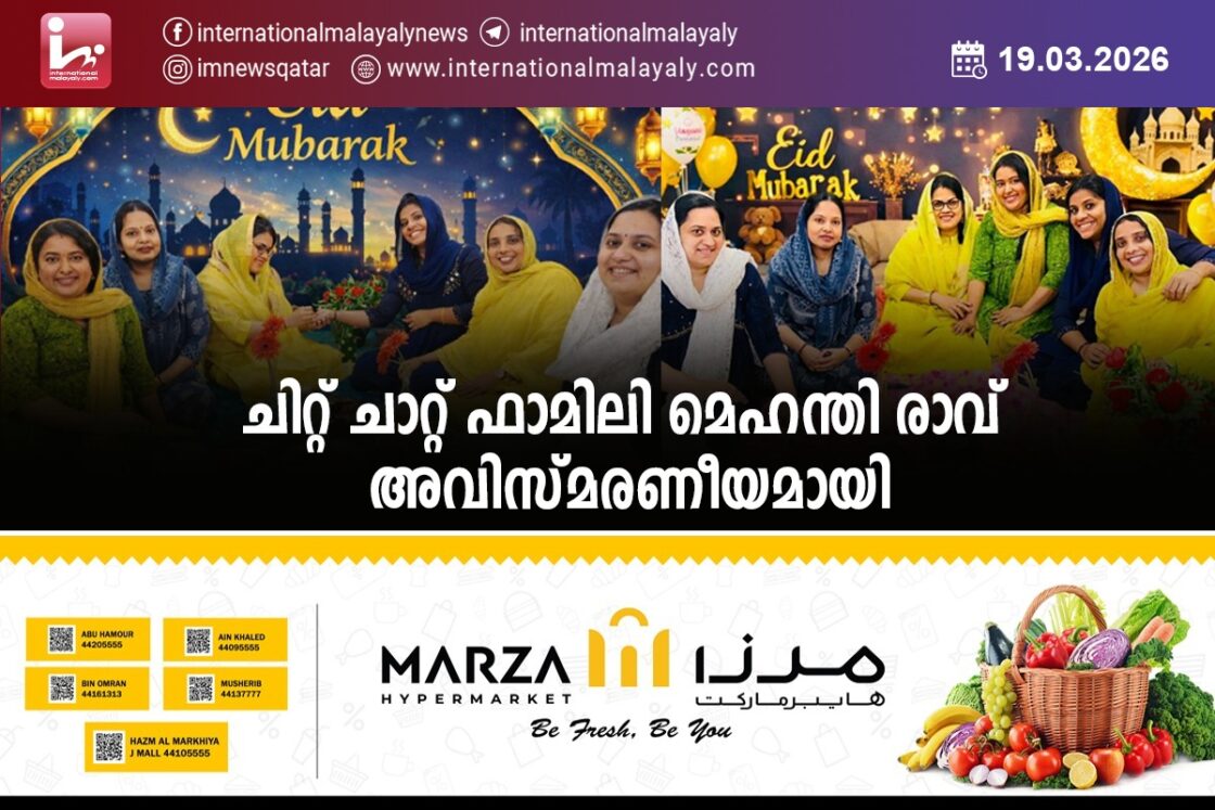 ദോഹ. മൈലാഞ്ചി മൊഞ്ചുള്ള രാവ്. നാടിന്റെ മണവും മനസ്സിന്റെ ഇണക്കവും ഒത്തു ചേര്ന്നപ്പോള് ഈ മണ്ണിലും സ്നേഹത്തില് ചാലിച്ച ഒരു സൗഹൃദ രാവ്. ചിറ്റ് ചാറ്റ് ഫാമിലി മെഹന്തി രാവ് അവിസ്മരണീയമായി . സമാന ചിന്തക്കാരായ ഏതാനും മലയാളി കുടുംബള് ചേര്ന്നാണ് സ്നേഹത്തിന്റേയും സൗഹൃദത്തിന്റേയും പുതുമകളോടെ അവിസ്മരണീയമായ