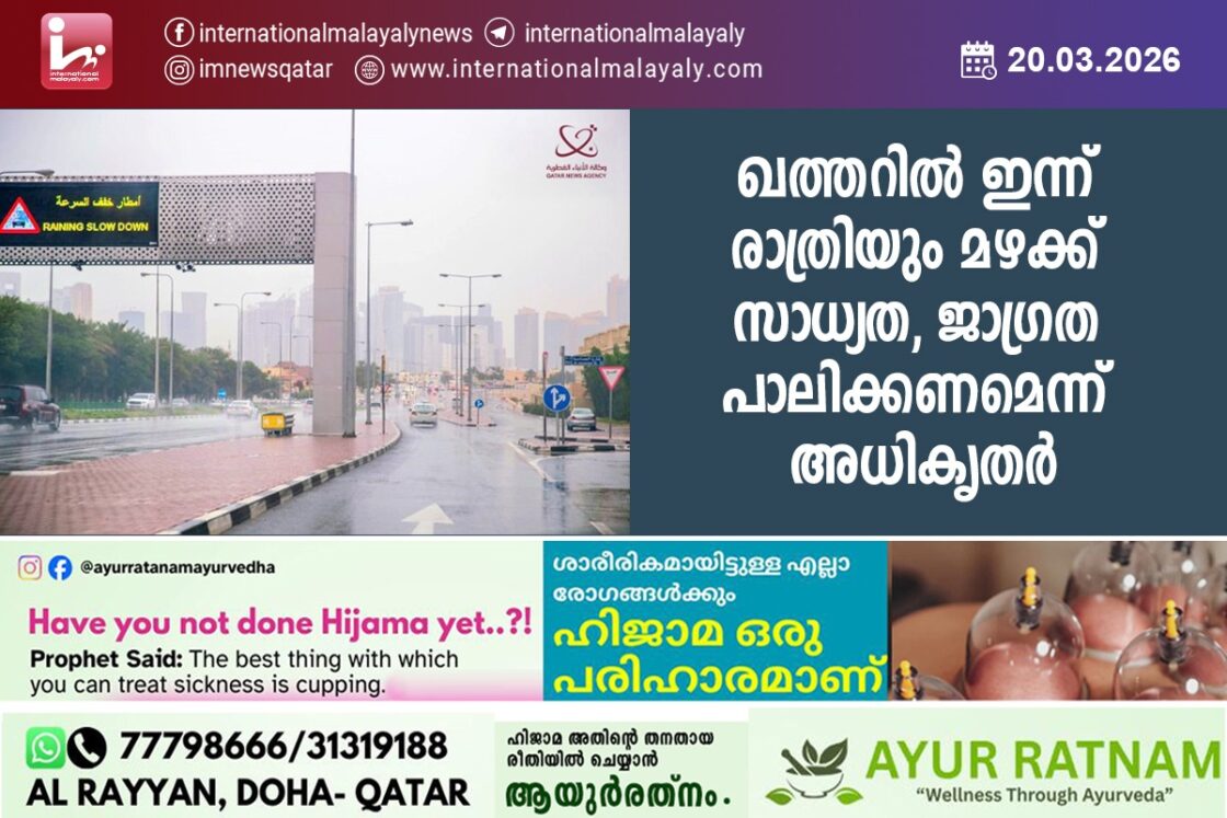 ഖത്തറില് ഇന്ന് രാത്രിയും മഴക്ക് സാധ്യത, ജാഗ്രത പാലിക്കണമെന്ന് അധികൃതര്