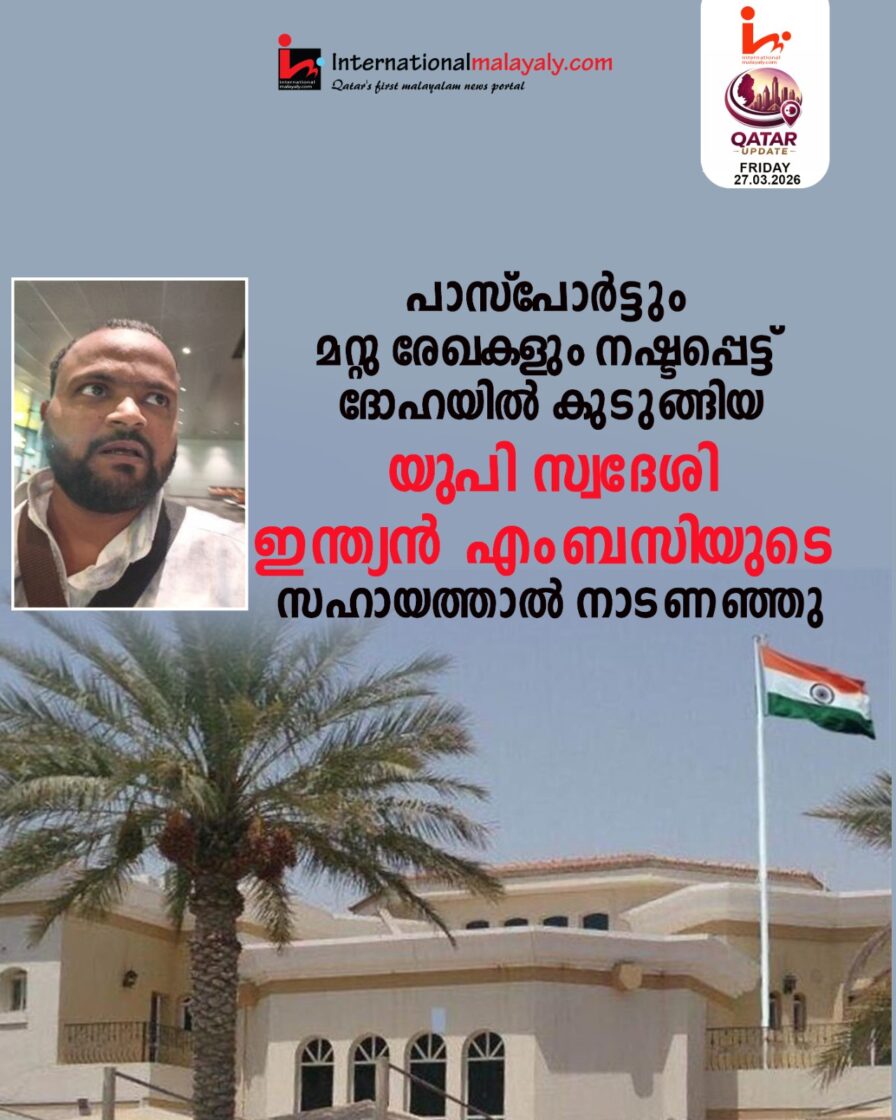 പാസ്പോര്ട്ടും മറ്റു രേഖകളും നഷ്ടപ്പെട്ട് ദോഹയില് കുടുങ്ങിയ യുപി സ്വദേശി ഇന്ത്യന് എംബസിയുടെ സഹായത്താല് നാടണഞ്ഞു