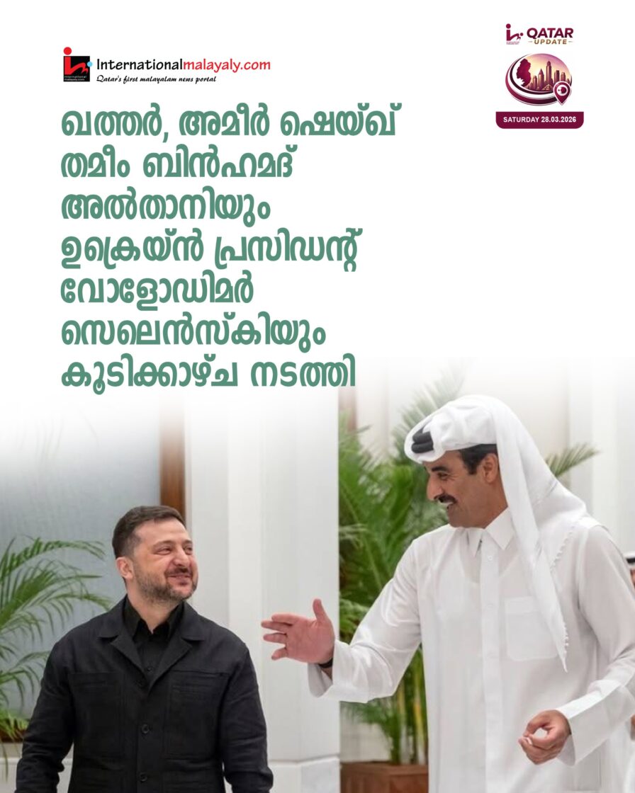 ഖത്തറിന്റെ പരമാധികാരം, സുരക്ഷ, പൗരന്മാരുടെ സുരക്ഷ എന്നിവ സംരക്ഷിക്കുന്നതിന് സ്വീകരിച്ച നടപടികള്ക്ക് ഉക്രെയ്ന് പ്രസിഡന്റ് പിന്തുണ പ്രഖ്യാപിക്കുകയും ഖത്തറിനുള്ള തന്റെ രാജ്യത്തിന്റെ ഐക്യദാര്ഢ്യം ആവര്ത്തിക്കുകയും ചെയ്തു.