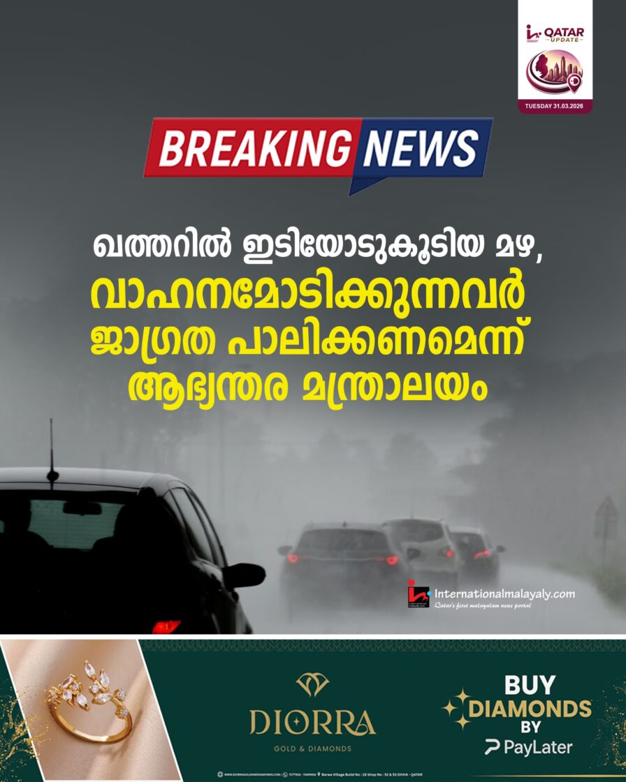 ഖത്തറില് ഇടിയോടുകൂടിയ മഴ, വാഹനമോടിക്കുന്നവര് ജാഗ്രത പാലിക്കണമെന്ന് ആഭ്യന്തര മന്ത്രാലയം