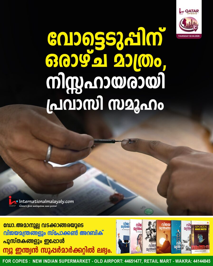 കേരളത്തില്‍ നിയമ സഭ തെരഞ്ഞെടുപ്പിന് ഒരാഴ്ച മാത്രം അവശേഷിക്കുമ്പോഴും നാട്ടിലെത്താനും തെരഞ്ഞെടുപ്പിന്റെ ഭാഗമാകാനും കഴിയാത്തതിന്റെ പ്രയാസത്തിലാണ് പ്രവാസി സമൂഹം. ഇറാനെതിരെ അമേരിക്കയും ഇസ്രായേലും ചേര്‍ന്നാരംഭിച്ച യുദ്ധം സൃഷ്ടിച്ച പ്രതിസന്ധികള്‍ ചില്ലറയല്ല. പലരുടേയും ജോലിയും ബിസിനസുമൊക്കെ വലിയ വെല്ലുവിളികളാണ് നേരിടുന്നത്. വ്യോമ മേഖലയിലെ പ്രശ്‌നങ്ങള്‍ കുറഞ്ഞ ചിലവിലെ യാത്ര അസാധ്യമാക്കുന്നു. സാധാരണഗതിയില്‍ വിമാനം ചാര്‍ട്ട് ചെയ്തും അല്ലാതെയും ആയിരക്കണക്കിന് പ്രവാസികള്‍ വോട്ട് ചെയ്യാന്‍ നാട്ടിലെത്താറുണ്ട്. ഈ വര്‍ഷം അത് ഗണ്യമായി കുറയാനാണ് സാധ്യത