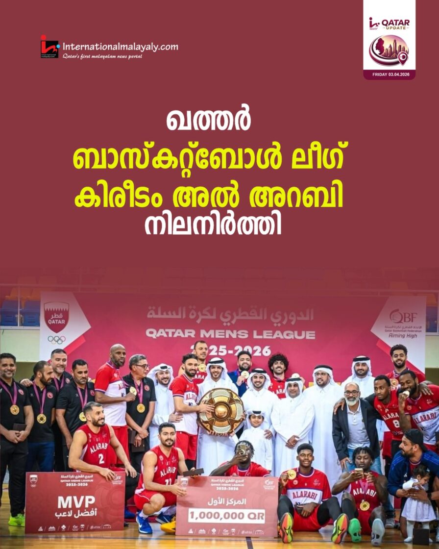 വ്യാഴാഴ്ച അല്‍ ഗറാഫ ഹാളില്‍ നടന്ന ബെസ്റ്റ്-ഓഫ്-ത്രീ ഫൈനലുകളുടെ രണ്ടാം മത്സരത്തില്‍ അല്‍ റയ്യാനെ 91-79ന് പരാജയപ്പെടുത്തിയാണ് അല്‍ അറബി തുടര്‍ച്ചയായ മൂന്നാം തവണയും ഖത്തര്‍ ബാസ്‌കറ്റ്‌ബോള്‍ ലീഗ് കിരീടം നേടിയത്.