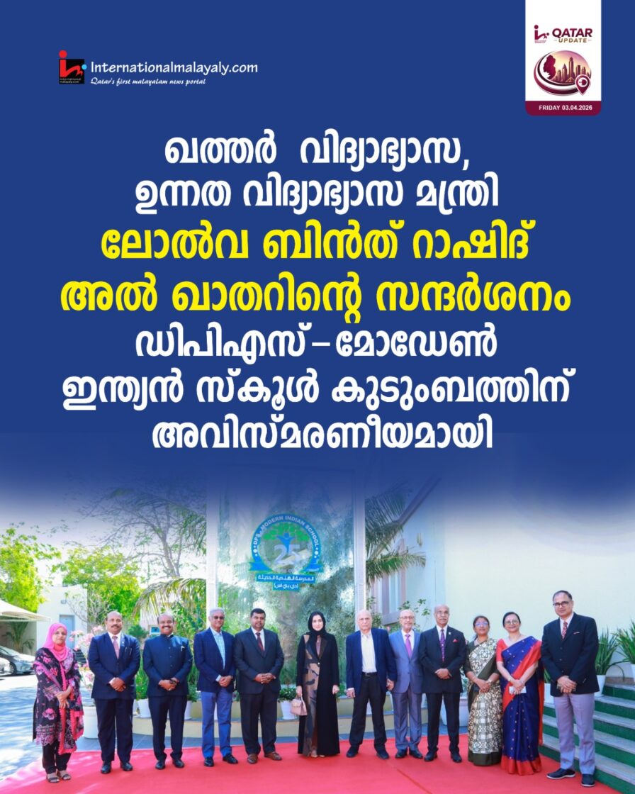 ഖത്തര് വിദ്യാഭ്യാസ, ഉന്നത വിദ്യാഭ്യാസ മന്ത്രി ലോല്വ ബിന്ത് റാഷിദ് അല് ഖാതറിന്റെ സന്ദര്ശനം ഡിപിഎസ്-മോഡേണ് ഇന്ത്യന് സ്കൂള് കുടുംബത്തിന് അവിസ്മരണീയമായി