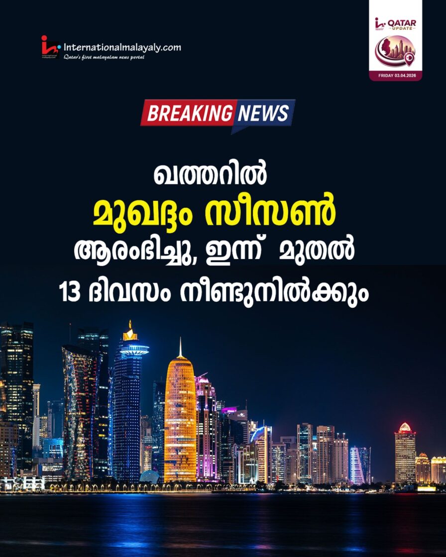 ഖത്തറില് മുഖദ്ദം സീസണ് ആരംഭിച്ചു, ഇന്ന് മുതല് 13 ദിവസം നീണ്ടുനില്ക്കും .. ചൂട് കുടുകയും അസ്ഥിരമായ കാലാവസ്ഥയുമാണ് ഈ സീസണിന്റെ പ്രത്യേകത, ഇടവിട്ട് പൊടിക്കാറ്റും ഉണ്ടാകാമെന്ന് ഖത്തര് കാലാവസ്ഥാ വകുപ്പ് അറിയിച്ചു.