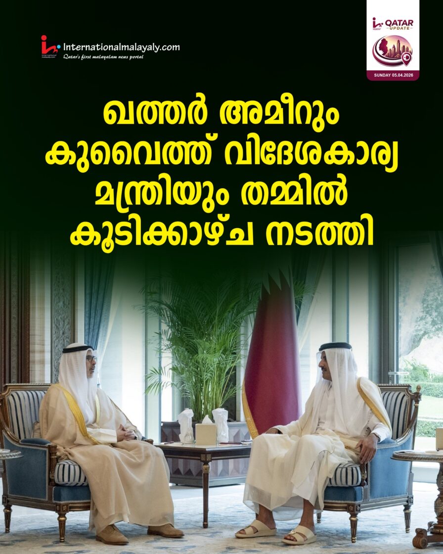 ഖത്തര് അമീറും കുവൈത്ത് വിദേശകാര്യ മന്ത്രിയും തമ്മില് കൂടിക്കാഴ്ച നടത്തി