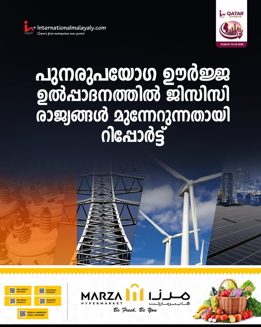 സൗരോര്ജ്ജത്തിന്റെയും കാറ്റിന്റെയും ശേഷിയില് ഉണ്ടായ വന് വളര്ച്ചയും ഉയര്ന്ന മഴ ലഭിച്ചതും ഈ രംഗത്തെ മുന്നേറ്റത്തിന് ശക്തിപകര്ന്നുവെന്ന് കഴിഞ്ഞ ദിവസം പുറത്തിറക്കിയ ജിസിസി സ്റ്റാറ്റിസ്റ്റിക്കല് സെന്ററിന്റെ ‘കാലാവസ്ഥാ സ്ഥിതിവിവരക്കണക്കുകള് 2024’ റിപ്പോര്ട്ടില് പറയുന്നു.