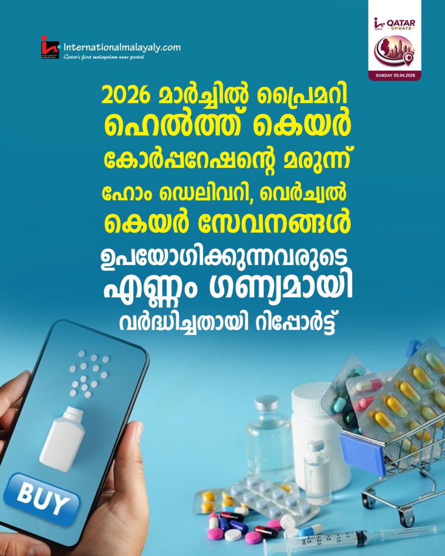 2026 മാര്‍ച്ചില്‍ പ്രൈമറി ഹെല്‍ത്ത് കെയര്‍ കോര്‍പ്പറേഷന്റെ മരുന്ന് ഹോം ഡെലിവറി, വെര്‍ച്വല്‍ കെയര്‍ സേവനങ്ങള്‍ ഉപയോഗിക്കുന്നവരുടെ എണ്ണം ഗണ്യമായി വര്‍ദ്ധിച്ചതായി റിപ്പോര്‍ട്ട്