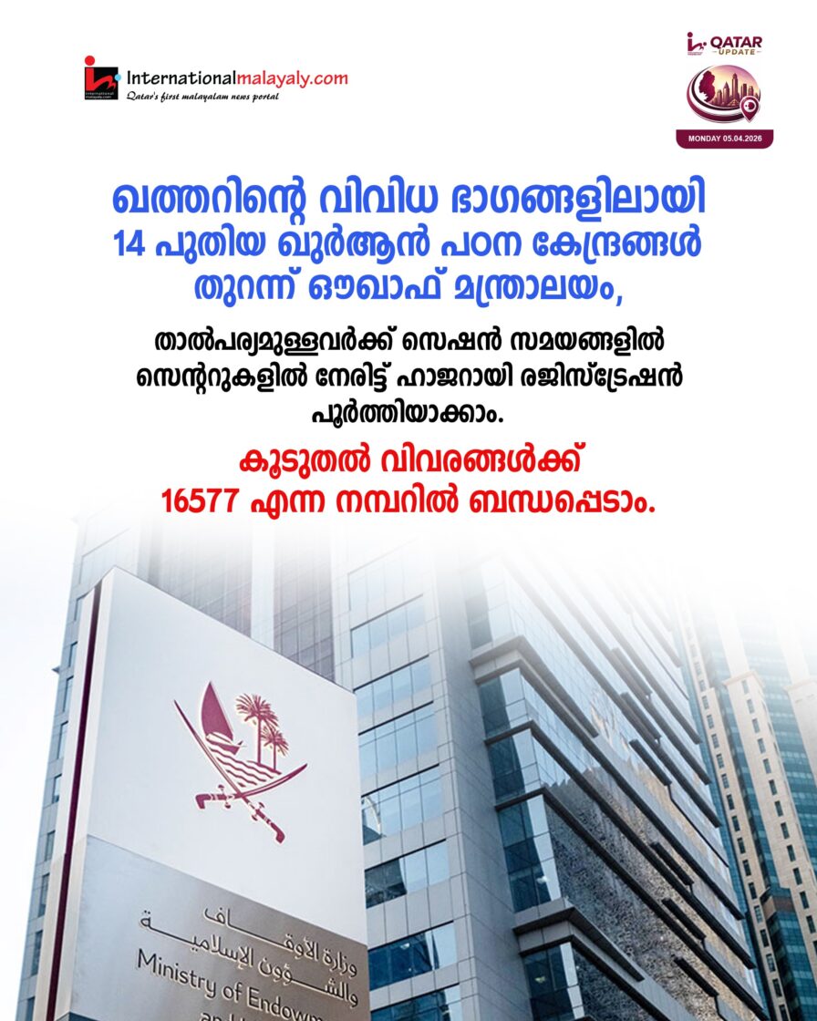ഖത്തറിന്റെ വിവിധ ഭാഗങ്ങളിലായി 14 പുതിയ ഖുര്ആന് പഠന കേന്ദ്രങ്ങള് തുറന്ന് ഔഖാഫ് മന്ത്രാലയം