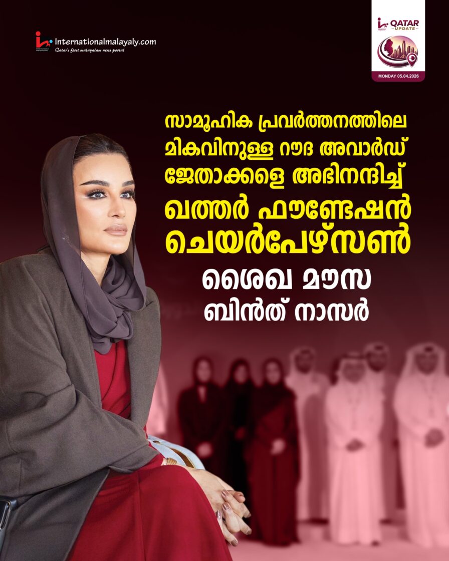 ‘സാമൂഹിക പ്രവര്ത്തനത്തിലെ മികവിനുള്ള റൗദ അവാര്ഡ് ജേതാക്കളെ അഭിനന്ദിച്ച് ഖത്തര് ഫൗണ്ടേഷന് ചെയര്പേഴ്സണ് ശൈഖ മൗസ ബിന്ത് നാസര് . മികവിന്റെയും ഉത്തരവാദിത്തത്തിന്റെയും സംസ്കാരം വളര്ത്തിയെടുക്കുകയും സുസ്ഥിര വികസന സ്വാധീനം സൃഷ്ടിക്കുകയും ചെയ്യുന്ന നടപടിയാണിതെന്ന് അവര് എക്സില് കുറിച്ചു