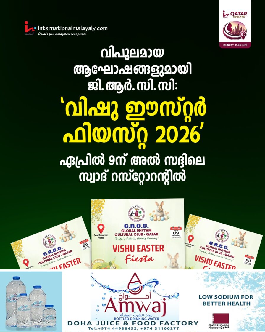 ഐക്യത്തിന്റെയും സ്നേഹത്തിന്റെയും സന്ദേശമുയര്ത്തി ഖത്തറിലെ പ്രമുഖ സാംസ്കാരിക കൂട്ടായ്മയായ ഗ്ലോബല് റിഥം കള്ച്ചറല് ക്ലബ് സംഘടിപ്പിക്കുന്ന ‘വിഷു-ഈസ്റ്റര് ഫിയസ്റ്റ 2026’ ഏപ്രില് 9 വ്യാഴാഴ്ച അല് സദ്ദിലെ സ്വാദ് റസ്റ്റോറന്റില് നടക്കും. വൈകുന്നേരം 7 മണി മുതല് രാത്രി 11:30 വരെയാണ് ആഘോഷപരിപാടികള് ക്രമീകരിച്ചിരിക്കുന്നത്. പ്രവാസി മലയാളികള്ക്ക് സാംസ്കാരിക തനിമയും ആഘോഷപ്പൊലിമയും ഒത്തുചേരുന്ന വേറിട്ടൊരു അനുഭവമായിരിക്കും ഈ സംഗമമെന്ന് സംഘാടകര് അറിയിച്ചു.