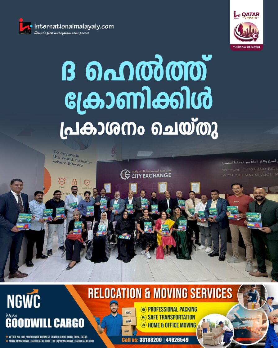 ദോഹ. ലോകാരോഗ്യ ദിനത്തോടനുബന്ധിച്ച് മീഡിയ പ്ളസ് പ്രസിദ്ധീകരിച്ച ദ ഹെല്ത്ത് ക്രോണിക്കിള് പ്രകാശനം ചെയ്തു . സിറ്റി എക്സ്ചേഞ്ചില് നടന്ന ചടങ്ങില് ഖത്തര് ഇന്ത്യന് ഫുട്ബോള് ഫോറം പ്രസിഡണ്ട് ഷറഫ് പി ഹമീദ്, ഇന്ത്യന് ആന്റി സ്മോക്കിംഗ് സൊസൈറ്റി ചെയര്മാന് ഡോ. എം.പി.ഹസന് കുഞ്ഞി, ഗ്ളോബല് ചെയര്മാന് ഡോ.മുഹമ്മദുണ്ണി ഒളകര എന്നിവര് ചേര്ന്നാണ് പ്രകാശനം നിര്വഹിച്ചത്.