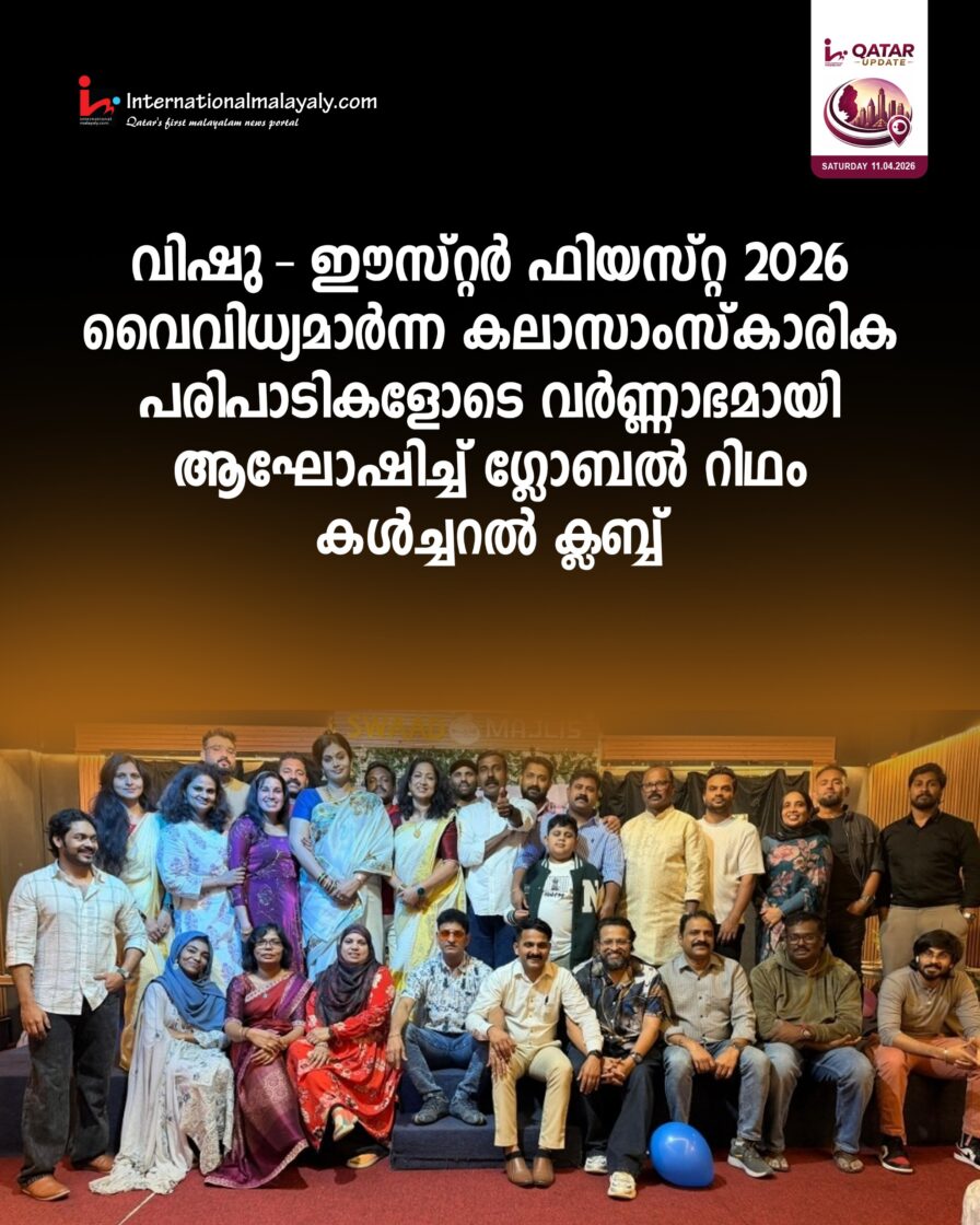 വിഷു-ഈസ്റ്റര്‍ ഫിയസ്റ്റ 2026 വൈവിധ്യമാര്‍ന്ന കലാസാംസ്‌കാരിക പരിപാടികളോടെ വര്‍ണ്ണാഭമായി ആഘോഷിച്ച് ഗ്ലോബല്‍ റിഥം കള്‍ച്ചറല്‍ ക്ലബ്ബ്