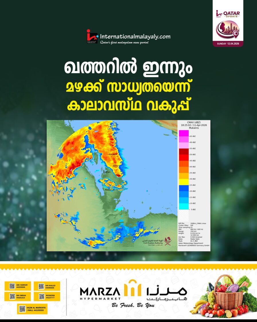 ഖത്തറില് ഇന്നും മഴക്ക് സാധ്യതയെന്ന് കാലാവസ്ഥ വകുപ്പ്