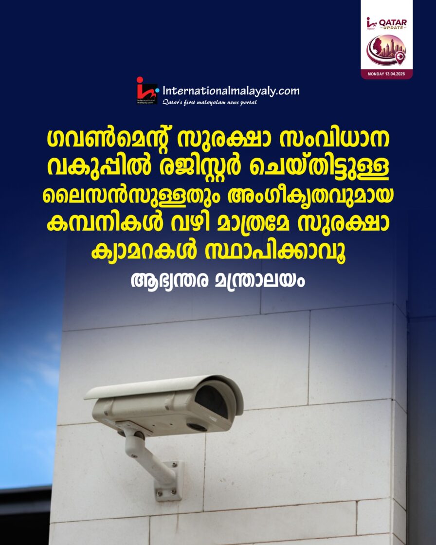 ഗവണ്‍മെന്റ് സുരക്ഷാ സംവിധാന വകുപ്പില്‍ രജിസ്റ്റര്‍ ചെയ്തിട്ടുള്ള ലൈസന്‍സുള്ളതും അംഗീകൃതവുമായ കമ്പനികള്‍ വഴി മാത്രമേ സുരക്ഷാ ക്യാമറകള്‍ സ്ഥാപിക്കാവൂ – ആഭ്യന്തര മന്ത്രാലയം