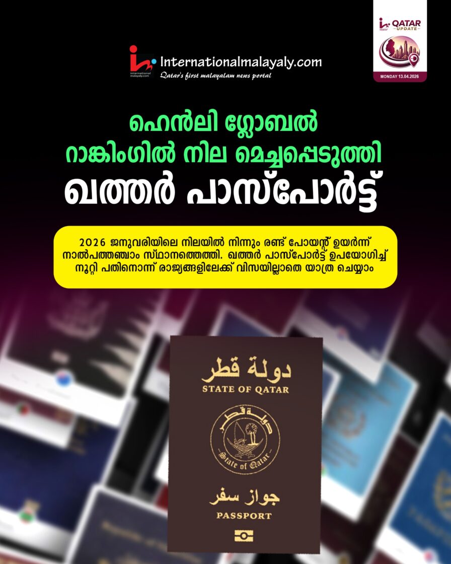 ഹെന്ലി ഗ്ലോബല് റാങ്കിംഗില് നില മെച്ചപ്പെടുത്തി ഖത്തര് പാസ്പോര്ട്ട്