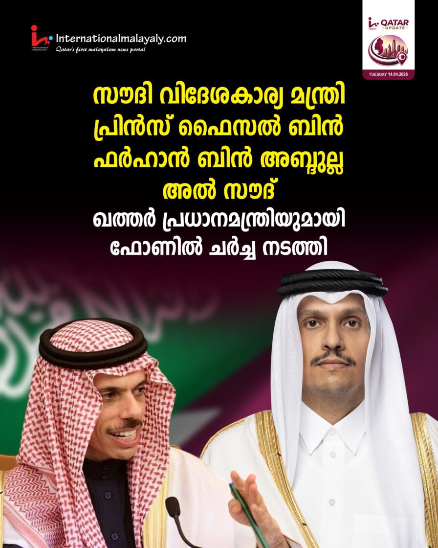 സൗദി വിദേശകാര്യ മന്ത്രി പ്രിന്സ് ഫൈസല് ബിന് ഫര്ഹാന് ബിന് അബ്ദുല്ല അല് സൗദ് ഖത്തര് പ്രധാനമന്ത്രിയുമായിഫോണില് ചര്ച്ച നടത്തി