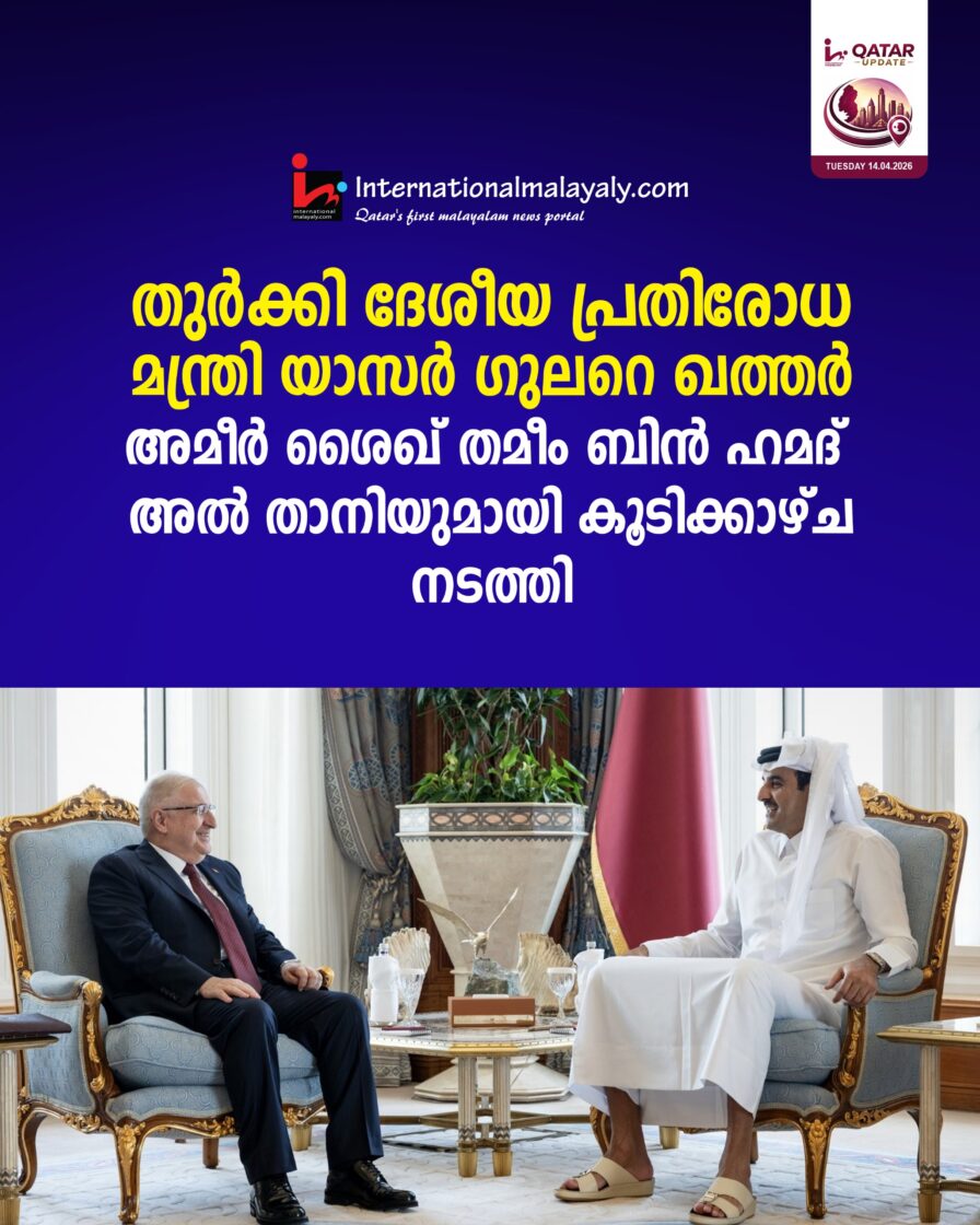 തുര്ക്കി ദേശീയ പ്രതിരോധ മന്ത്രി യാസര് ഗുലറെ ഖത്തര് അമീര് ശൈഖ് തമീം ബിന് ഹമദ് അല് താനിയുമായി കൂടിക്കാഴ്ച നടത്തി