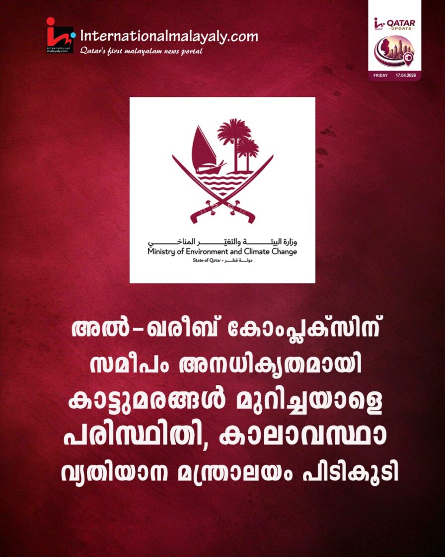 മധ്യമേഖലയിലെ അല്-ഖരീബ് കോംപ്ലക്സിന് സമീപം അനധികൃതമായി കാട്ടുമരങ്ങള് മുറിച്ചതിനും മുറിച്ചതിനും ഒരു വ്യക്തിയെ പരിസ്ഥിതി, കാലാവസ്ഥാ വ്യതിയാന മന്ത്രാലയം അതിന്റെ വന്യജീവി സംരക്ഷണ വകുപ്പ് മുഖേന പിടികൂടി, പരിസ്ഥിതി സംരക്ഷണ നിയമങ്ങള്ക്കനുസൃതമായി ആവശ്യമായ നിയമനടപടി സ്വീകരിച്ചു.