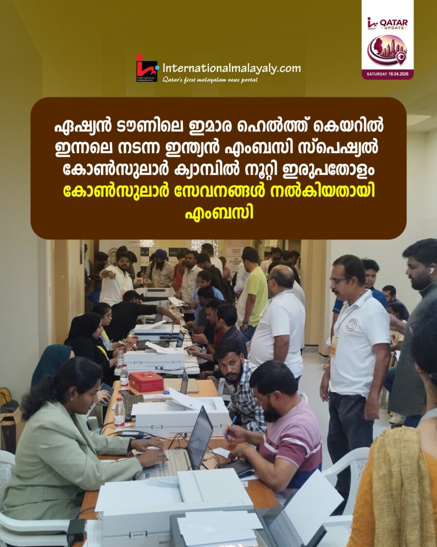 ഏഷ്യന് ടൗണിലെ ഇമാറ ഹെല്ത്ത് കെയറില് ഇന്നലെ നടന്ന ഇന്ത്യന് എംബസി സ്പെഷ്യല് കോണ്സുലാര് ക്യാമ്പില് നൂറ്റി ഇരുപതോളം കോണ്സുലാര് സേവനങ്ങള് നല്കിയതായി എംബസി