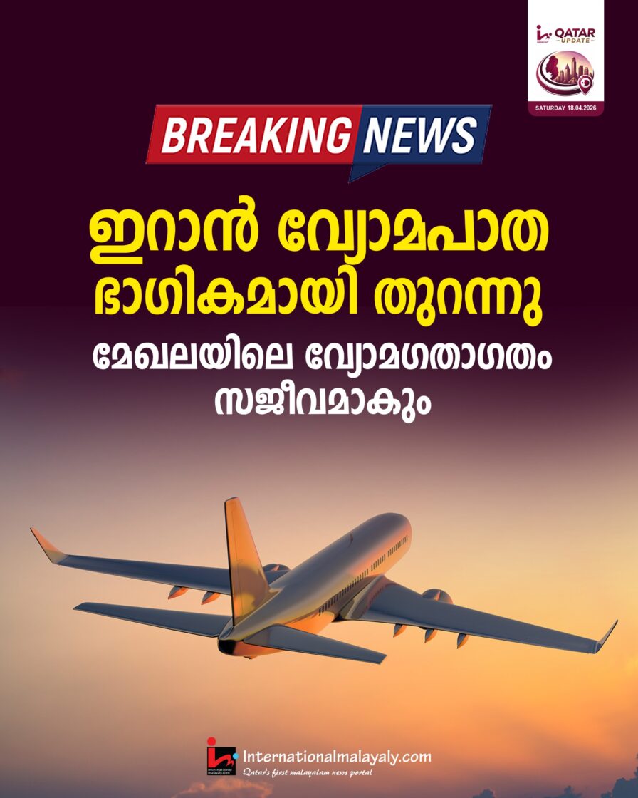 തങ്ങളുടെ പ്രദേശത്തിന്റെ കിഴക്കന്‍ ഭാഗം മുറിച്ചുകടക്കുന്ന അന്താരാഷ്ട്ര വിമാനങ്ങള്‍ക്കായാണ് ശനിയാഴ്ച വ്യോമാതിര്‍ത്തി ഭാഗികമായി വീണ്ടും തുറന്നതായി ഇറാന്‍ സിവില്‍ ഏവിയേഷന്‍ അതോറിറ്റി അറിയിച്ചത്.
