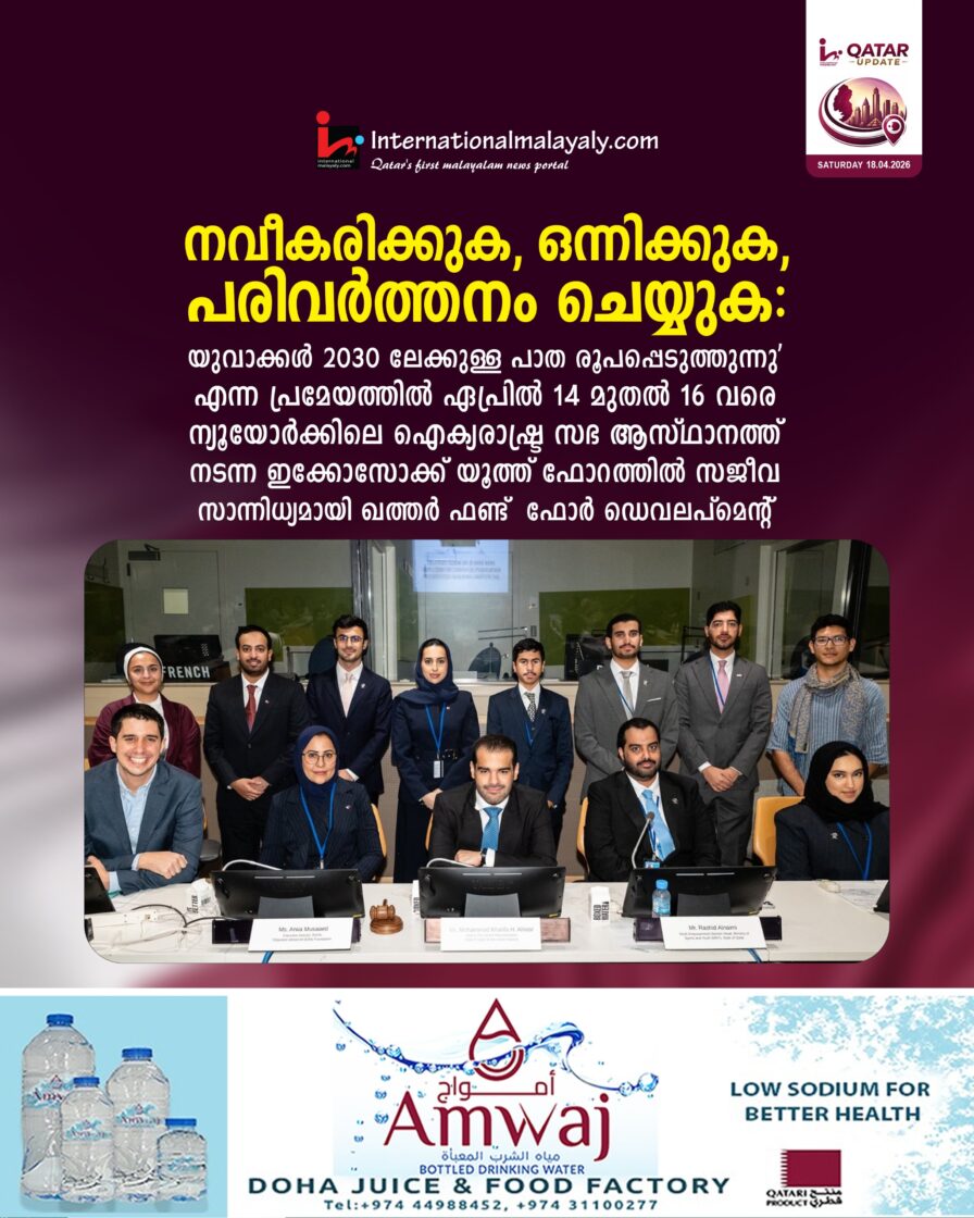 ഏപ്രില് 14 മുതല് 16 വരെ ന്യൂയോര്ക്കിലെ ഐക്യരാഷ്ട്ര സഭ ആസ്ഥാനത്ത് നടന്ന ഇക്കോസോക്ക് യൂത്ത് ഫോറത്തില് സജീവ സാന്നിധ്യമായി ഖത്തര് ഫണ്ട് ഫോര് ഡെവലപ്മെന്റ്