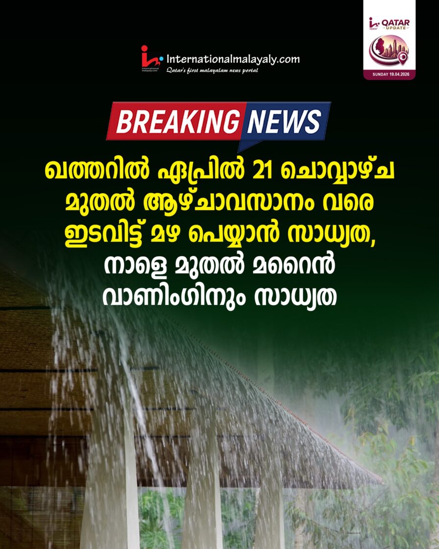 ഖത്തറില് ഏപ്രില് 21 ചൊവ്വാഴ്ച മുതല് ആഴ്ചാവസാനം വരെ ഇടവിട്ട് മഴ പെയ്യാന് സാധ്യത, നാളെ മുതല് മറൈന് വാണിംഗിനും സാധ്യത